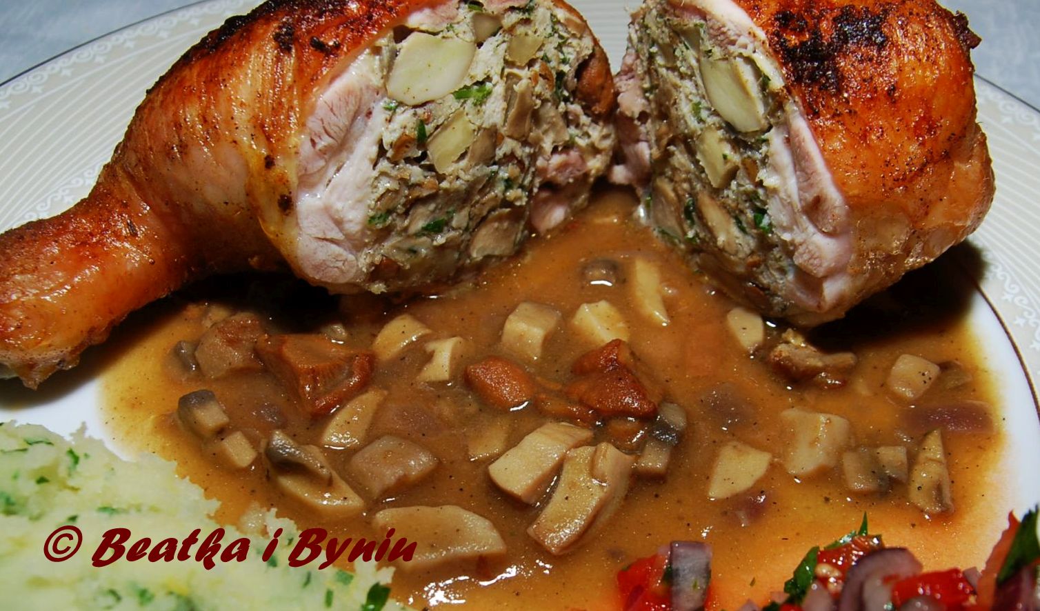 Zapach jesieni zimą, czyli Udka kurczaka nadziewane prawdziwkami w sosie maderowym z grzybkami, odświeżającą sałatką ...