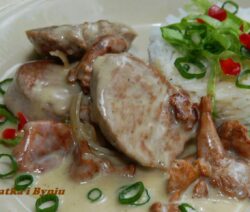 Medaliony z polędwicy w sosie z kurkami