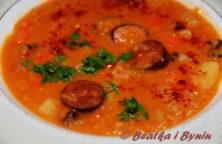 Gotujemy pod przykryciem 15 minut. Doprawiamy solą, pieprzem, gałką muszkatołową i majerankiem. Właściwie zupa jest gotowa. Niektórzy taką lubią.